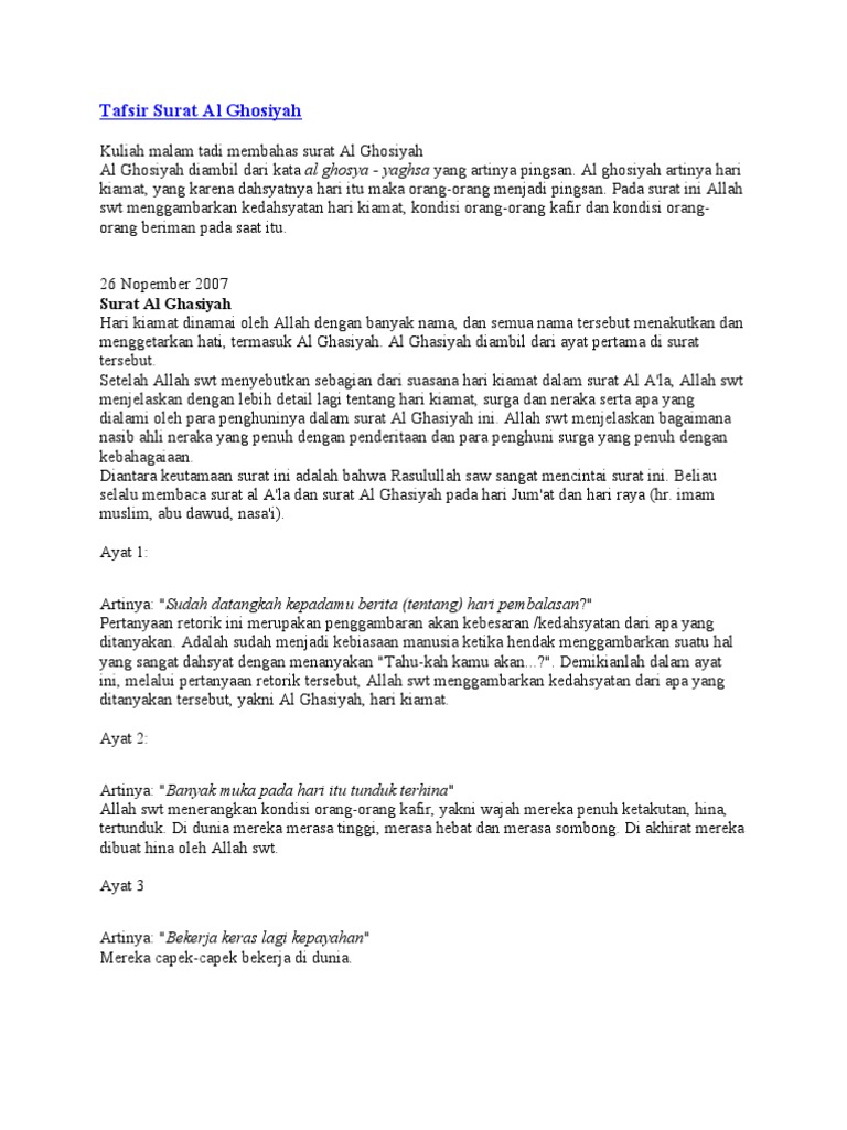 Al Ghasyiyah Dan Artinya - Surah ini tergolong surah dalam golongan surat makkiyah dan terdiri atas 26 ayat.