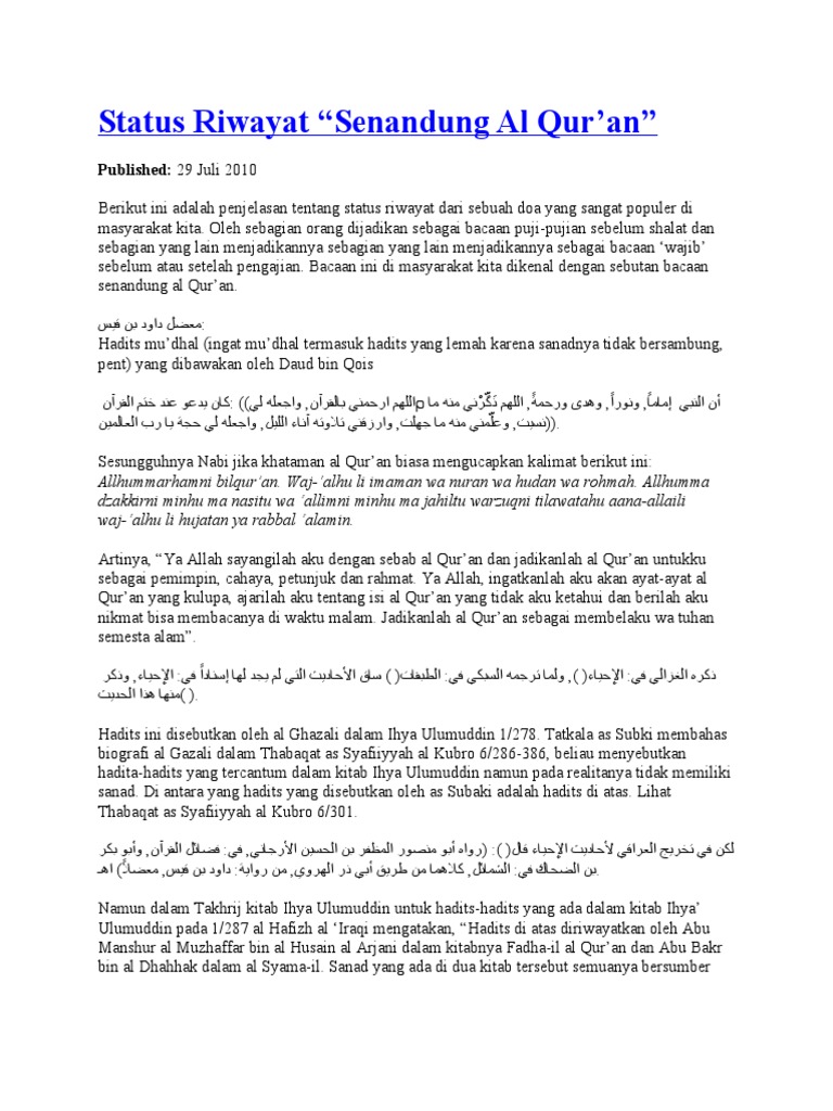 Arti Senandung Alquran : Materi doa senandung al qur'an dalam tulisan huruf arab dan teks latin disertai arti terjemahan.