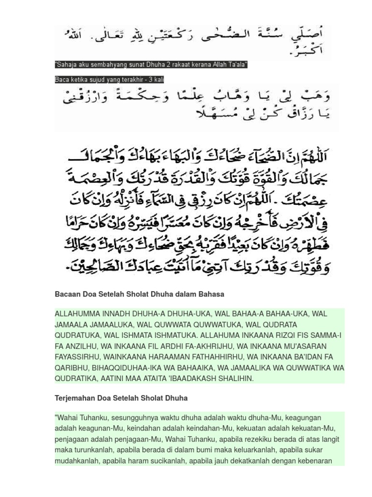 Cara Solat Dhuha Yang Mudah Berserta Doa Kelebihannya Bacaan doa sholat dhuha lengkap arab, latin, dzikir, dan artinya, rahasia doa setelah selesai dan sesudah shalat dhuha dan keutamaan sholat dhuha 4 doa shalat dhuha adalah salah satu yang meminta agar dilancarkan rezeki oleh allah swt.
