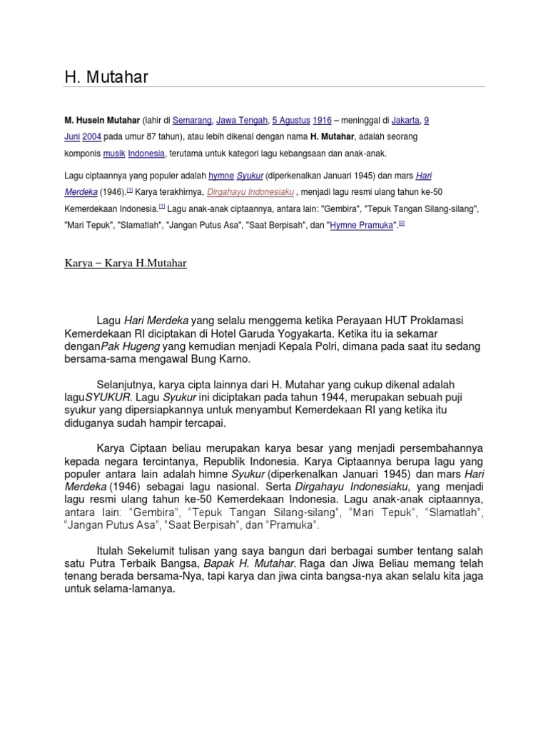 Lagu Syukur Diciptakan Oleh : Lagu syukur diciptakan oleh h.