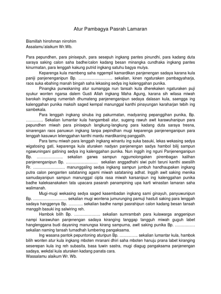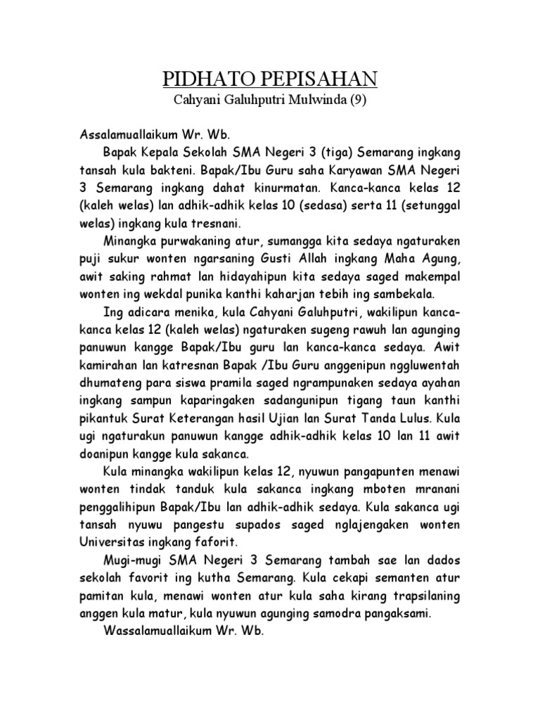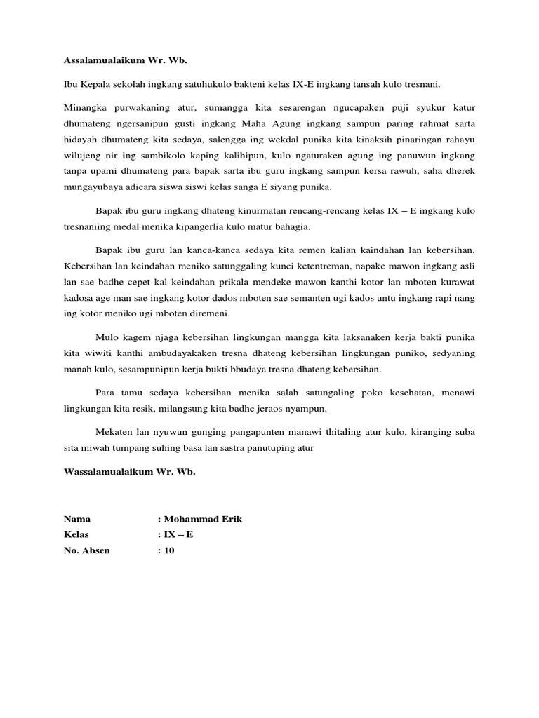 Minangka Purwakaning Atur Sumangga / Maring panjenengan minangka kapala sakolah.